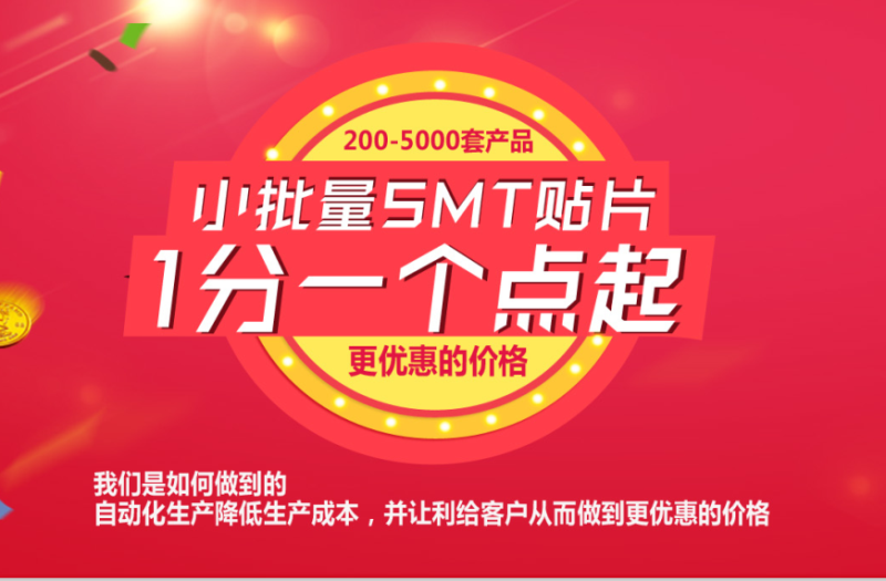 小批量訂單價格優惠,200-5000套產品加工,1分錢一個點起 銘華航電,SMT貼片加工找我們做,給您優惠的價格, 我們是如何做到的呢 自動化生產降低生產成本,并讓利客戶從而做到更優惠的價格?。?!